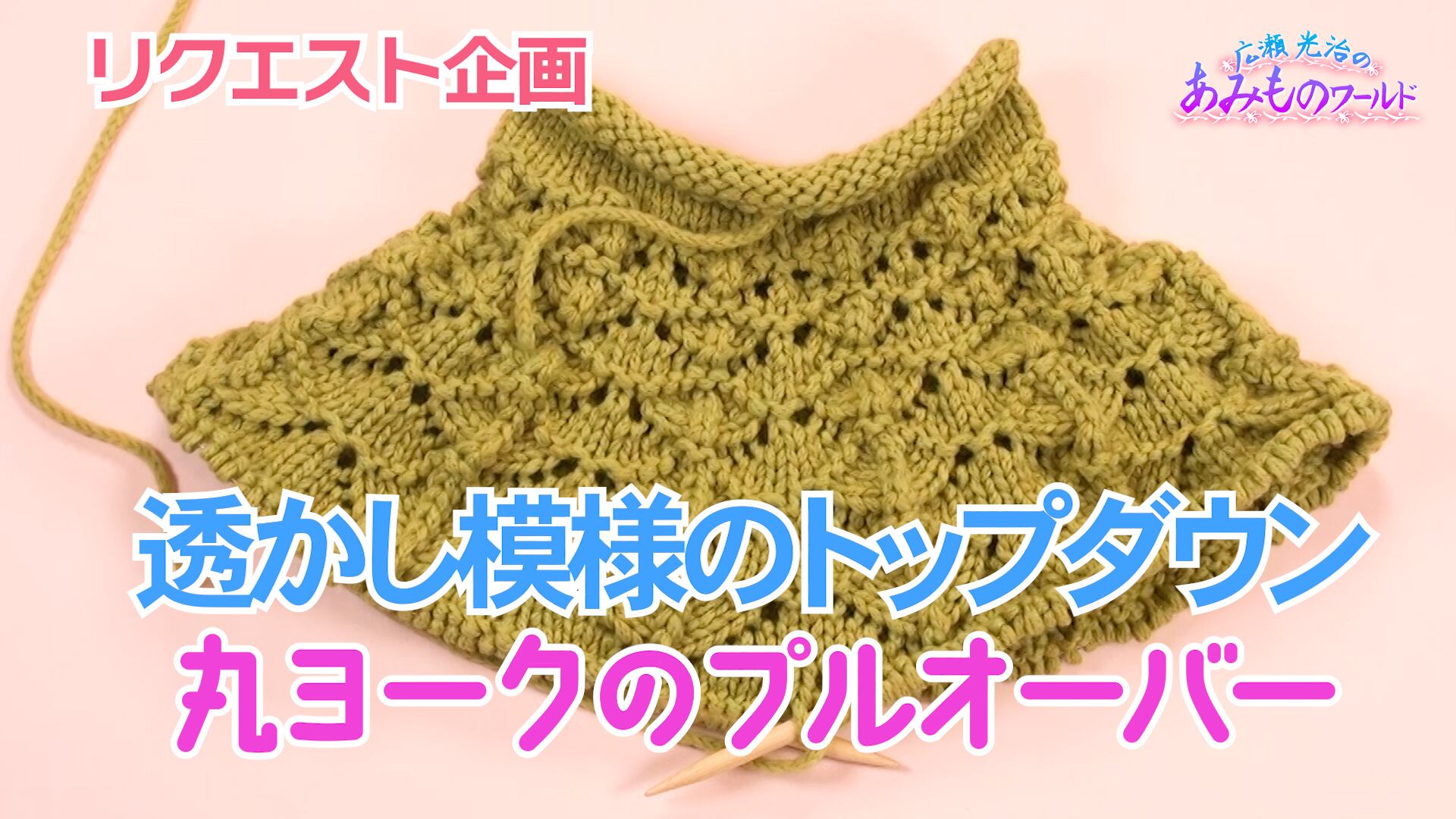 トップダウンのプルオーバー。透かし模様を入れて軽やかな雰囲気にしています。